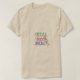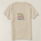 El diseño de la camiseta muestra el texto "¿Real o No Real?" en un gradiente de colores arcoiris contra un fondo oscuro y cósmico. El texto está distorsionado, lo que le da una atmósfera tristona y psicodélica. Planetas, estrellas y cometas se reparten por todo el diseño, añadiendo a la temática cósmica.