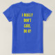 ¡Estén orgullosos de tu apatía! Cuando la gente de todas partes esté hablando de alguna moda o acontecimiento actual, deja claro que no estás menos interesado. El mensaje de esta camisa tendrá un significado diferente, dependiendo de ¡CUÁNDO la lleves!
