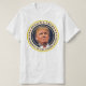 Diseño inaugural de Donald Trump con un retrato del presidente Trump rodeado de estrellas de fondo azul.