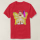 El color es muy bonito al natural, como la foto. El tejido es suave y de buena calidad. Sin defectos en el tintado, ni hilos sueltos o descosidos. Bien la impresión. Los bordes de las letras y el dibujo son nítidos, y el color contrasta muy bien con el de la camiseta.