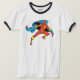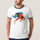 El color es muy bonito al natural, como la foto. El tejido es suave y de buena calidad. Sin defectos en el tintado, ni hilos sueltos o descosidos. Bien la impresión. Los bordes de las letras y el dibujo son nítidos, y el color contrasta muy bien con el de la camiseta.