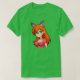 El color es muy bonito al natural, como la foto. El tejido es suave y de buena calidad. Sin defectos en el tintado, ni hilos sueltos o descosidos. Bien la impresión. Los bordes de las letras y el dibujo son nítidos, y el color contrasta muy bien con el de la camiseta.