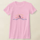 El rosa básico de la camiseta de las señoras con el chica y el hibisco de la persona que practica surf florece