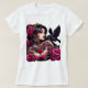 Una audaz reimaginación de una princesa clásica, con tatuajes llamativos, rosas de la delincuencia y dos pájaros negros enmarcando su elegante pose. Su tatuaje en forma de corazón y sus vibrantes elementos de diseño mezclan el encanto de un cuento de hadas con el arte del tatuaje provocativo.