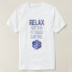 Esta camiseta muestra la cita "Relájate. Nada está bajo control". y el Símbolo de Geometría Sagrada para la Semilla de la Vida. Este diseño es para recordarnos que vivimos con cuidado, en este momento, y que nuestras vidas están cambiando constantemente con cada respiración