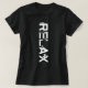 Texto vertical elegante Relájese decorado con siluetas femeninas relajantes. Camiseta divertida y única para las mujeres. Fondo negro u oscuro. No olvide elegir otro estilo, tamaño, color y género de la camisa. También puede transferir este diseño a otro producto, simplemente utilice la opción a continuación. ¡Diviértete, cómprate uno y sé feliz!