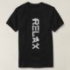 Texto vertical elegante Relájese decorado con siluetas relajantes masculinas. Camiseta divertida y única para hombres. Fondo negro u oscuro. No olvide elegir otro estilo, tamaño, color y género de la camisa. También puede transferir este diseño a otro producto, simplemente utilice la opción a continuación. ¡Diviértete, cómprate uno y sé feliz!