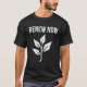 The "Renew Now" slogan is paired with a simple geometric plant. The poster-like style and transparent background make it easy to use on dark apparel, emphasizing the urgency for change.