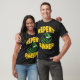 El color es muy bonito al natural, como la foto. El tejido es suave y de buena calidad. Sin defectos en el tintado, ni hilos sueltos o descosidos. Bien la impresión. Los bordes de las letras y el dibujo son nítidos, y el color contrasta muy bien con el de la camiseta.
