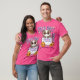 El color es muy bonito al natural, como la foto. El tejido es suave y de buena calidad. Sin defectos en el tintado, ni hilos sueltos o descosidos. Bien la impresión. Los bordes de las letras y el dibujo son nítidos, y el color contrasta muy bien con el de la camiseta.