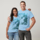 Se presenta un diseño abstracto, con inclinación diagonal, geométrico, compuesto por formas y líneas con un efecto descolorido, con estampado en azul acuático, y gris-verde claro, influenciado por el estilo moderno de mediados de siglo. Fotografiado aquí con una camiseta azul claro, con otros colores y estilos disponibles. El diseño combina con el color de la camiseta un poco de color acuático. El diseño proyecta una elegante calidad artística para una adicción versátil y elegante a tu ropa informal y diaria (ya sea en casa, socializando con amigos, jugando deportes o corriendo por la ciudad). El diseño de la camisa como "arte para llevar" también expresa un sentido de tu estilo individualizado, contribuyendo a la sensación de estar "juntos" y ser creativo en tus elecciones de armario personal.