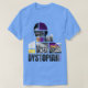 El color es muy bonito al natural, como la foto. El tejido es suave y de buena calidad. Sin defectos en el tintado, ni hilos sueltos o descosidos. Bien la impresión. Los bordes de las letras y el dibujo son nítidos, y el color contrasta muy bien con el de la camiseta.
