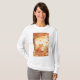 Un zorro lindo se sienta pacíficamente en un bosque otoñal rodeado de hojas, hongos y calabazas coloridas. Los tonos cálidos de naranja, rojo y amarillo crean un ambiente acogedor y caprichoso.