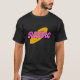 El color es muy bonito al natural, como la foto. El tejido es suave y de buena calidad. Sin defectos en el tintado, ni hilos sueltos o descosidos. Bien la impresión. Los bordes de las letras y el dibujo son nítidos, y el color contrasta muy bien con el de la camiseta.