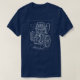 A white line art blueprint of a vintage engine on black, featuring detailed cylinders and pulley, perfect for tech enthusiasts and makers seeking bold monochrome apparel.