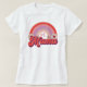 Celebra la maternidad con nuestro Tee Gráfico Retro Mama Rainbow. Este encantador diseño presenta un arcoíris vibrante en tonos rojos, rosas y violetas, adornado con delicados tonos blancos y centros rojos a ambos lados. La palabra "Mamá" aparece de forma prominente en letras audaces y retro en la parte inferior, con tres corazones rosas flotando encima, añadiendo un toque de amor y calidez. Perfecto para las madres que aprecian una estética nostálgica y vintage, esta camisa es a la vez elegante y sentida.