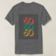 Retro Sixty Sixty Sixty Grey T-Shirt con huellas rojas, verdes y amarillas.