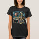 Viewing the cosmos while commanding a space ship with an unexpectant guest. With all this excitement the beautiful heroine remains calm. The vivid colors, bold energy, and vintage space theme pay tribute to the thrilling imagination of midcentury science fiction book covers and movie posters.