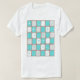 Esta camiseta turquesa retro y Starbursts blancos es tan adorablemente espaciosa que no podrás contener tu entusiasmo. ¿Y por qué querrías? Este diseño de inspiración moderna de mediados de los años 60 presenta un fondo gris de cuero oscuro y filas de rectángulos perfectamente imperfectos en turquesa, blanco y gris paloma. Los starburst de color blanco y turquesa se colocan en rectángulos seleccionados al azar. Este modelo moderno le hará sentir como si hubiera saltado en una máquina del tiempo y hubiera establecido el dial para una cosecha irresistiblemente vintage.