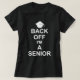 En el estilo de los Británicos populares "guarde la calma y continúe" los posters, este diseño de la camiseta para los estudiantes de la High School secundaria en su último año dice, "retrocédame son un mayor" con la silueta de un mortarboard de la graduación. Si usted está en la clase mayor, esta camisa será divertida llevar para advertir a los underclassmen de su fresco, situación del upperclassman. ¡Llévela con orgullo mayor!