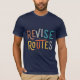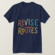 El diseño de la camiseta muestra la frase "Revisar rutas" en una pantalla multicolor dinámica. Cada carta rebosa de un color diferente, lo que transmite una sensación de adaptabilidad y apertura a explorar nuevos caminos.
