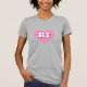 Esta camiseta tiene un corazón rosado que contiene las letras negrita, blanca y alta del funda RI, la abreviatura oficial de Rhode Island, el estado del océano.