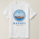 Rodas, camiseta de hombres griegos con un diseño de un antiguo barco griego y letras de estilo griego. Este diseño presenta un barco de la Antigua Grecia y el patrón de líneas clave griegas en un círculo con el mar y el cielo. Este diseño de tipo griego hace de esta teja un regalo o recuerdo ideal para llevar una noche de vacaciones en la isla de Rodas.