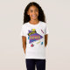 El color es muy bonito al natural, como la foto. El tejido es suave y de buena calidad. Sin defectos en el tintado, ni hilos sueltos o descosidos. Bien la impresión. Los bordes de las letras y el dibujo son nítidos, y el color contrasta muy bien con el de la camiseta.