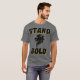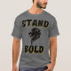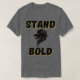 Esta camiseta tiene un diseño que muestra las palabras "Stand Bold" en un tipo de letra negrita con letra negra sobre una sombra de color dorado con un ícono de cabeza de león negro y dorado en el centro en este tema de cita de la biblia basado en la fe. Esta camisa está hecha de 100% algodón, es unisex y se viste bien con cualquiera y con todos. Doble costura en el dobladillo de la parte inferior y las mangas para hacerla más resistente.