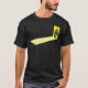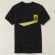 Una camiseta del robot con un ilustracion de un robot que se coloca en una entrada abierta. Un rectángulo largo de la luz ámbar pone antes de la entrada. Usted puede oír alguien decir, "él es baaack." ¿Pero él viene en paz?
