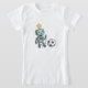 A futuristic robot decorated with Christmas lights and accompanied by a soccer ball. This design is perfect for fans of technology, soccer, and the holiday spirit.