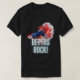 El color es muy bonito al natural, como la foto. El tejido es suave y de buena calidad. Sin defectos en el tintado, ni hilos sueltos o descosidos. Bien la impresión. Los bordes de las letras y el dibujo son nítidos, y el color contrasta muy bien con el de la camiseta.