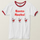 " Rocas de Santa!" con la guitarra tres jugando santas, en rojo en una camisa blanca/roja del campanero