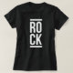 A high-contrast black and white vertical wordmark stacking R O C K in bold sans. Monochrome, angular edge for streetwear, music fans, bold graphic tees and event merchandise.