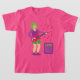 Este bonito y divertido ilustracion de chicas de rock cuenta con un rockero femenino retro brillante y colorido con el pelo verde, una guitarra eléctrica rosa caliente, un violeta y una falda de impresión de leopardo verde. Este adorable arte musical vintage de los años 80 es el regalo perfecto para quien ame el arte vectorial original con un tema musical.