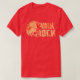 El color es muy bonito al natural, como la foto. El tejido es suave y de buena calidad. Sin defectos en el tintado, ni hilos sueltos o descosidos. Bien la impresión. Los bordes de las letras y el dibujo son nítidos, y el color contrasta muy bien con el de la camiseta.