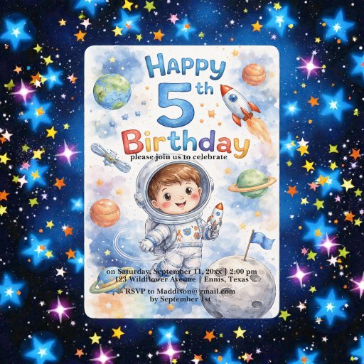 Blast off into an unforgettable celebration with this adorable 5th Birthday Astronaut Watercolor t-shirt! Featuring a sweet smiling astronaut boy floating in space, surrounded by colorful planets, stars, and rockets, this design is perfect for little space explorers who dream of adventures beyond the stars.