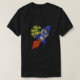 El color es muy bonito al natural, como la foto. El tejido es suave y de buena calidad. Sin defectos en el tintado, ni hilos sueltos o descosidos. Bien la impresión. Los bordes de las letras y el dibujo son nítidos, y el color contrasta muy bien con el de la camiseta.