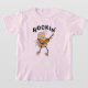 El texto de Rockin con un rock feliz tocando una guitarra es un diseño musical divertido para músicos, estudiantes y profesores en cumpleaños y vacaciones.