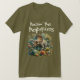 Triceratops en medio de un jardín prehistórico. Rockin' los Reptiles está escrito en un tipo blanco fúnebre. Esta camisa está disponible en muchos colores, estilos y tamaños. Se ve mejor en un color más oscuro.