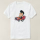 Caricatura de un rodador caliente de cincuenta años en una chaqueta de cuero y corte de pelo pompadour. Personalizar cualquiera de los productos para un cumpleaños o un aniversario retro. Perfecto para los amantes de los coches clásicos o para los niños de los años 50.