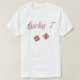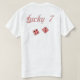 Mi camisa afortunada 7 en rojo. El modelo usado en el logotipo es una ondulación metálica que salió realmente agradable. (Versiones azules y rosadas disponibles en mi galería.)