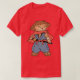 El color es muy bonito al natural, como la foto. El tejido es suave y de buena calidad. Sin defectos en el tintado, ni hilos sueltos o descosidos. Bien la impresión. Los bordes de las letras y el dibujo son nítidos, y el color contrasta muy bien con el de la camiseta.