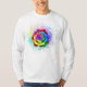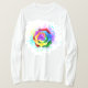 Rosa grande y floreciente con pétalos de arco iris sobre fondo blanco, pintado con salpicaduras de pintura colorida y brillante. 3.ª
