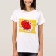 Un diseño original de estilo retro con un recuerdo de rosa rojo procedente de una fiesta española con un fondo amarillo a rayas. Un diseño de personalizable en blanco, negro, rojo y amarillo para que puedas personalizar con tu propio texto, imágenes e ideas. Imagen original de arte digital.