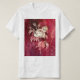 A delicate monochrome rose is set against a vibrant red background, creating a striking contrast. The composition is accented with speckled textures, adding depth to the floral imagery.