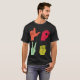 El color es muy bonito al natural, como la foto. El tejido es suave y de buena calidad. Sin defectos en el tintado, ni hilos sueltos o descosidos. Bien la impresión. Los bordes de las letras y el dibujo son nítidos, y el color contrasta muy bien con el de la camiseta.