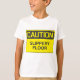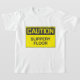 Un signo de suelo resbaladizo de precaución en amarillo. Este diseño se ve realmente efectivo en esta camiseta para niños