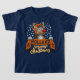 El color es muy bonito al natural, como la foto. El tejido es suave y de buena calidad. Sin defectos en el tintado, ni hilos sueltos o descosidos. Bien la impresión. Los bordes de las letras y el dibujo son nítidos, y el color contrasta muy bien con el de la camiseta.