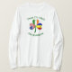 La camiseta femenina de manga larga personalizada incluye banderas de Rumania, Irlanda y Estados Unidos de América (EEUU) en varias hojas de este chamrock, diseñado para celebrar las festividades rumanas, el Día de San Patricio y el 4 de julio. Arriba están las palabras TRES CULTURAS. Abajo, UN NOMBRE. Las palabras están en verde oscuro, estilo celta, letras circulares. Añade tu nombre al lugar correcto para tener un aspecto personalizado. Para un regalo personalizado, simplemente agregue el nombre de otra persona.
